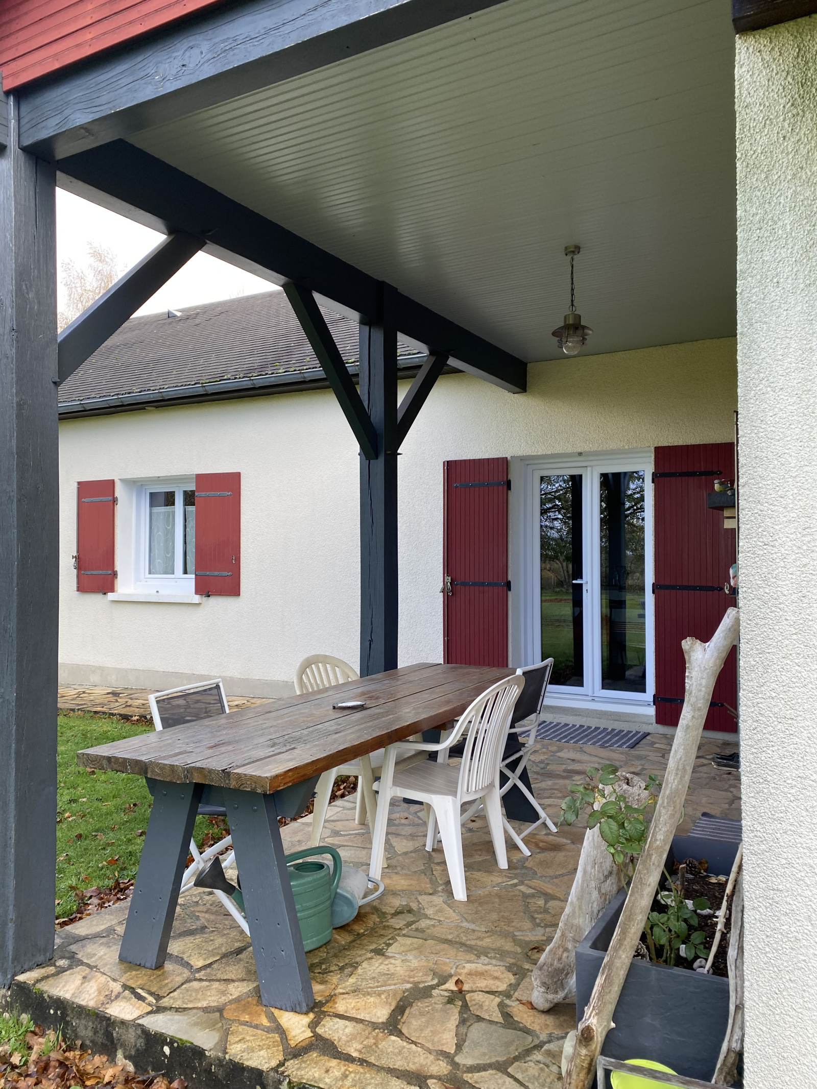 La cuisine de 15 m² est fonctionnelle et lumineuse, et la salle de bain répondra à tous vos besoins quotidiens. Profitez d’une terrasse couverte avec barbecue pour vos repas en extérieur, ainsi que d’une grande dépendance de 84 m² offrant de nombreuses possibilités (atelier, stockage, etc.).