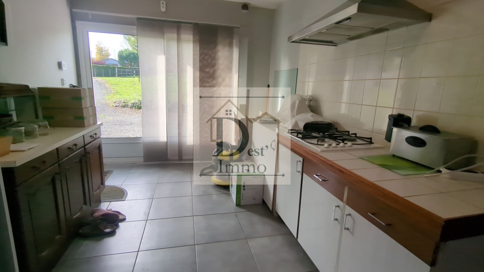 Terrasse avec accès direct à la cuisine et coin barbecue.