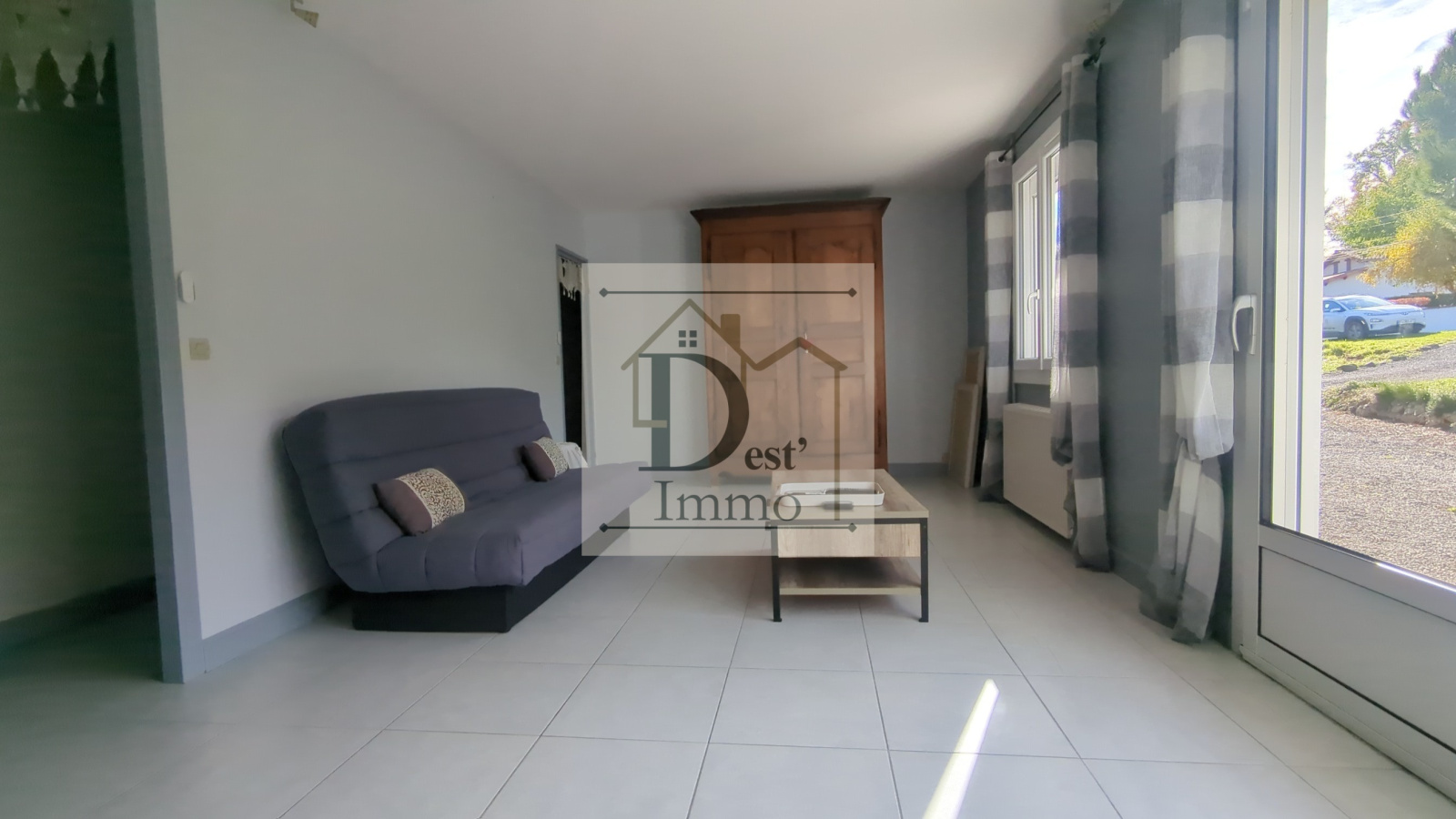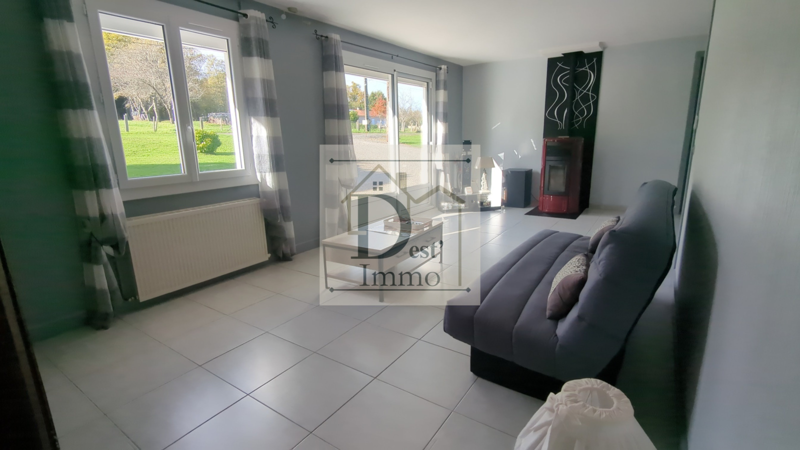 Pièce aménagée avec baies vitrées (idéale bureau ou salle de jeux).