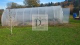Serre potagère et arbres fruitiers.